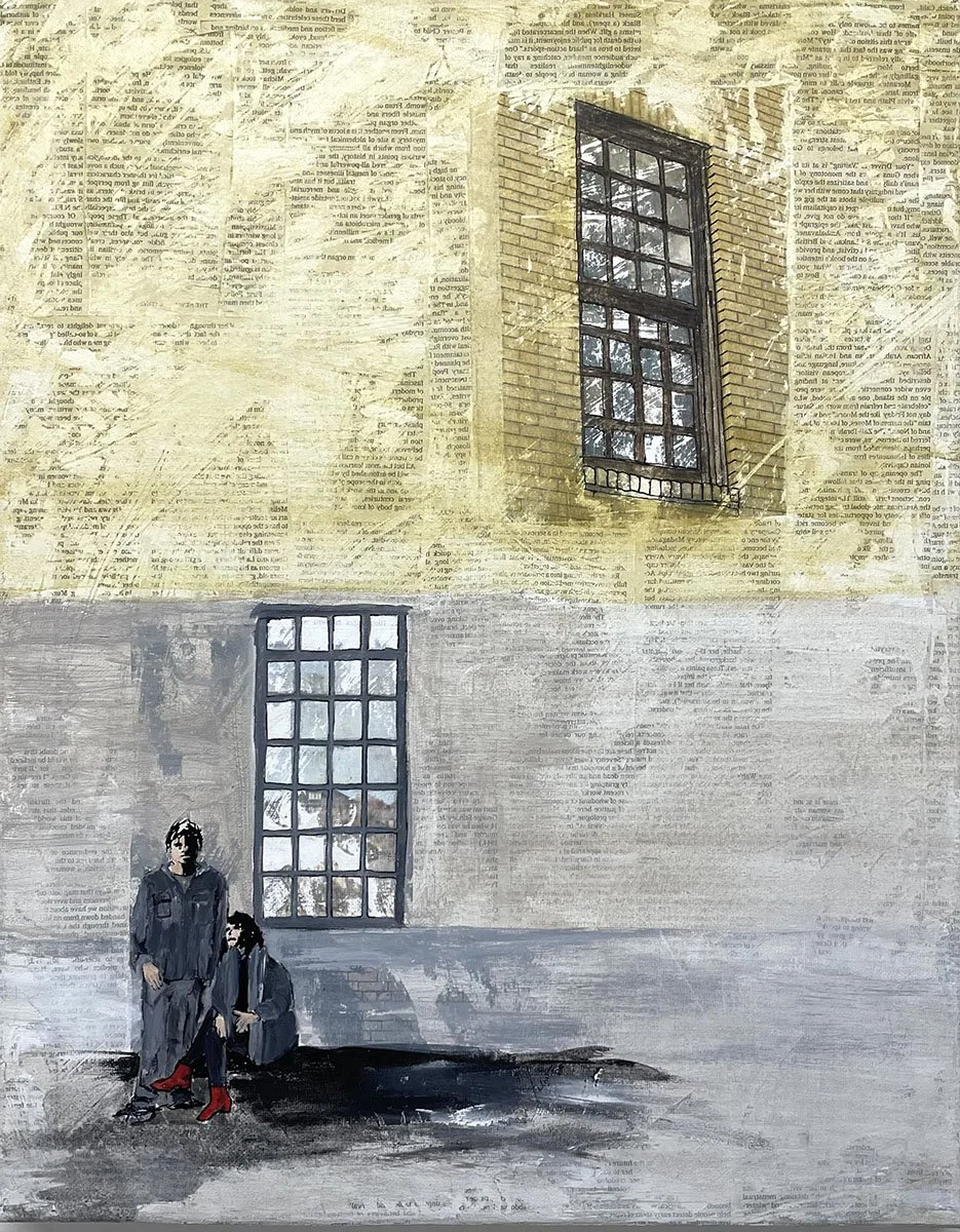 Neighbors, acrylic and ink transfer on canvas panel, 8X10 [private collection]